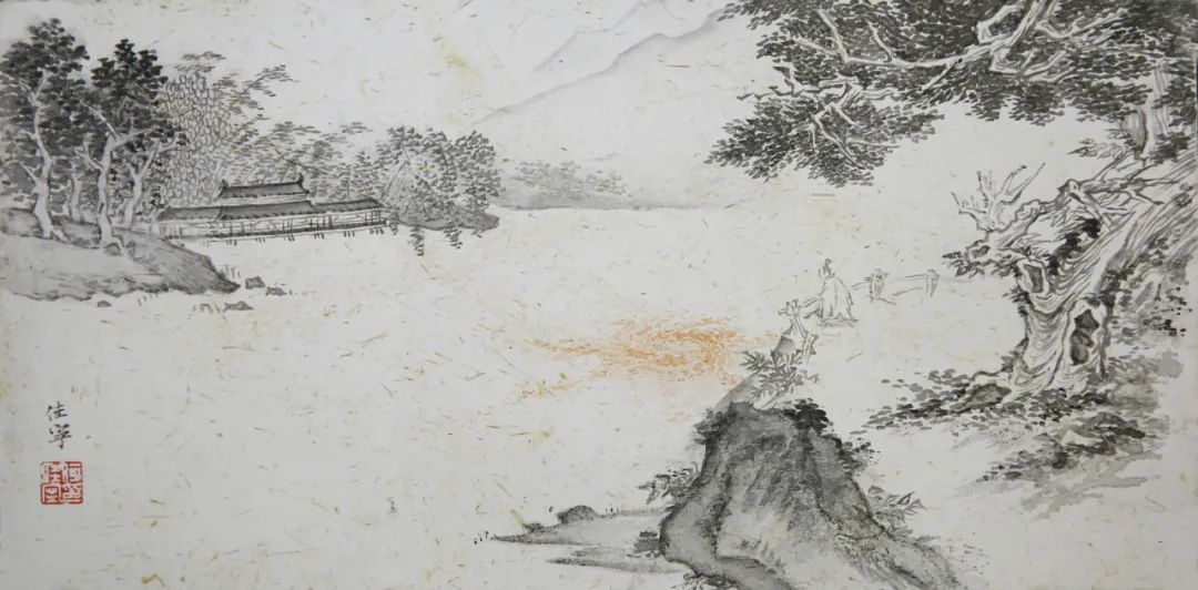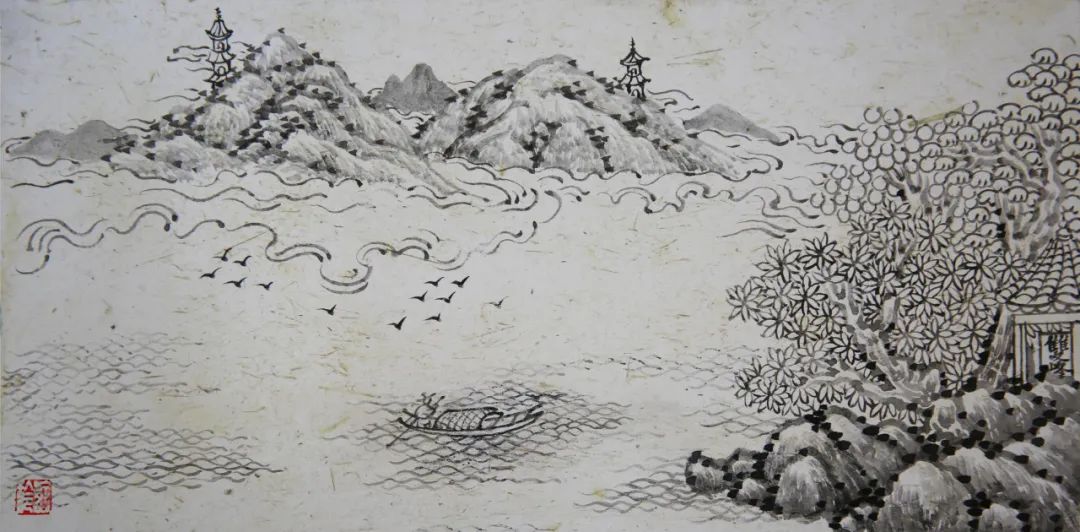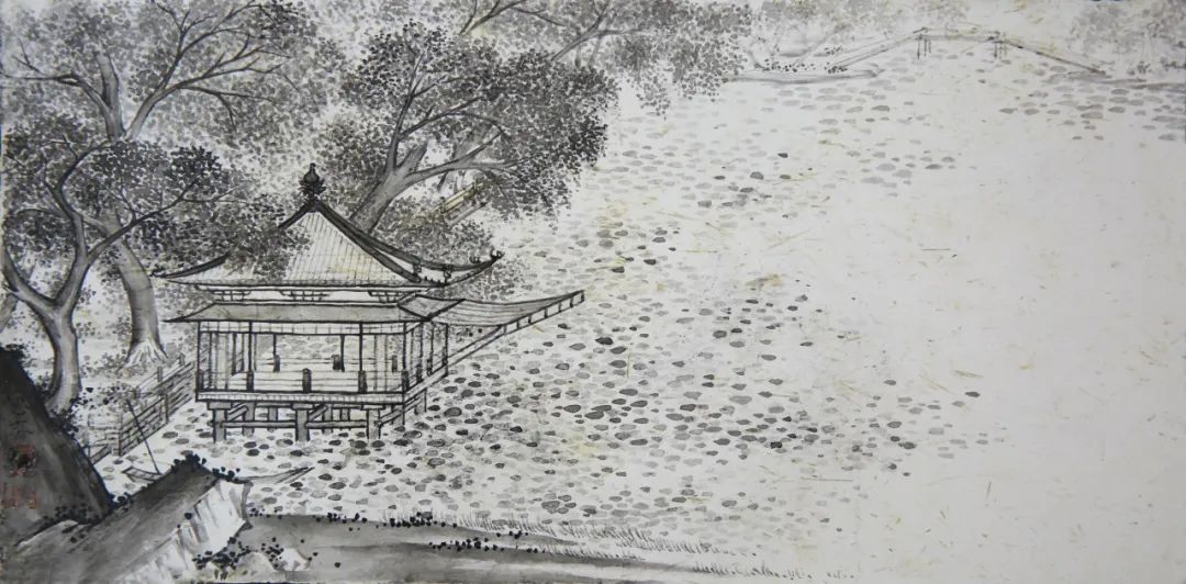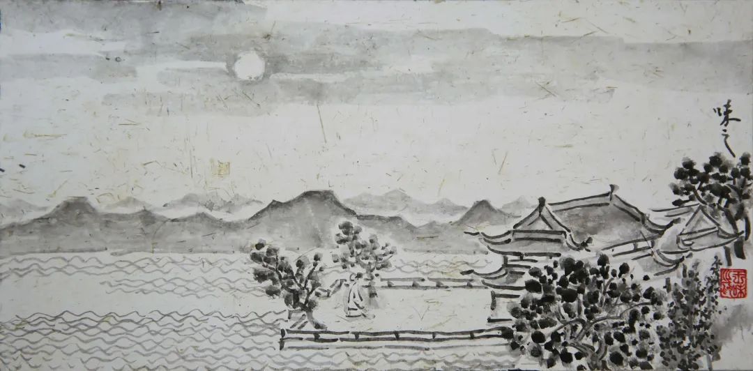王味之 《平湖秋月》 水墨壁画 23cm×12cm