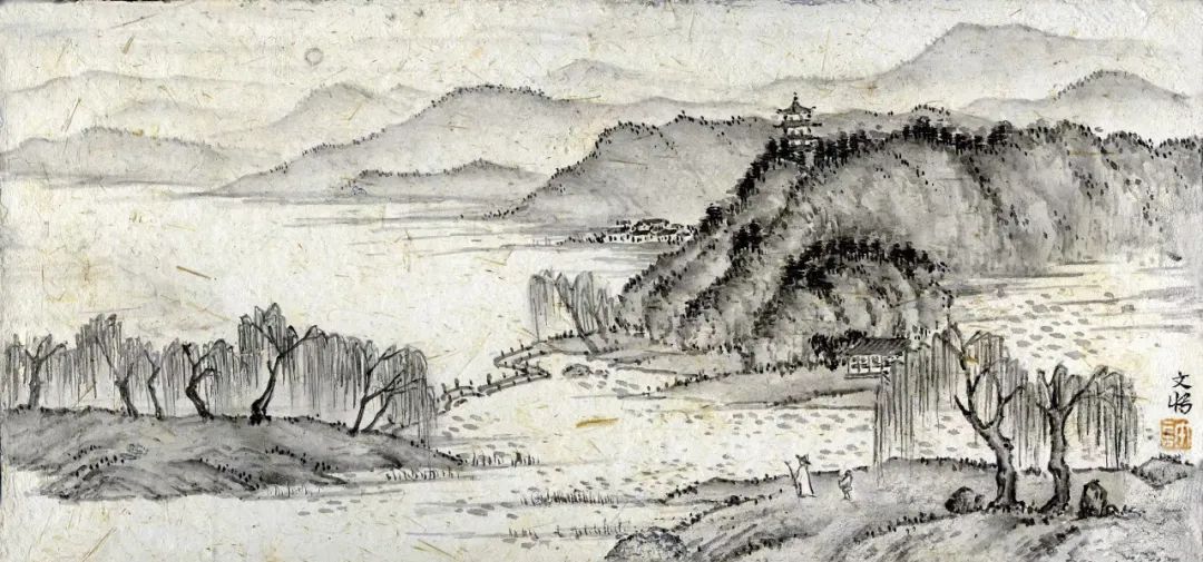 奚恺 《苏堤春晓》 水墨壁画 23cm×12cm