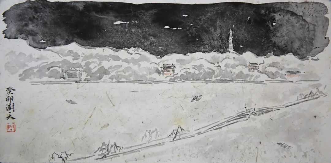 周澍天 《断桥残雪》 水墨壁画 23cm×12cm