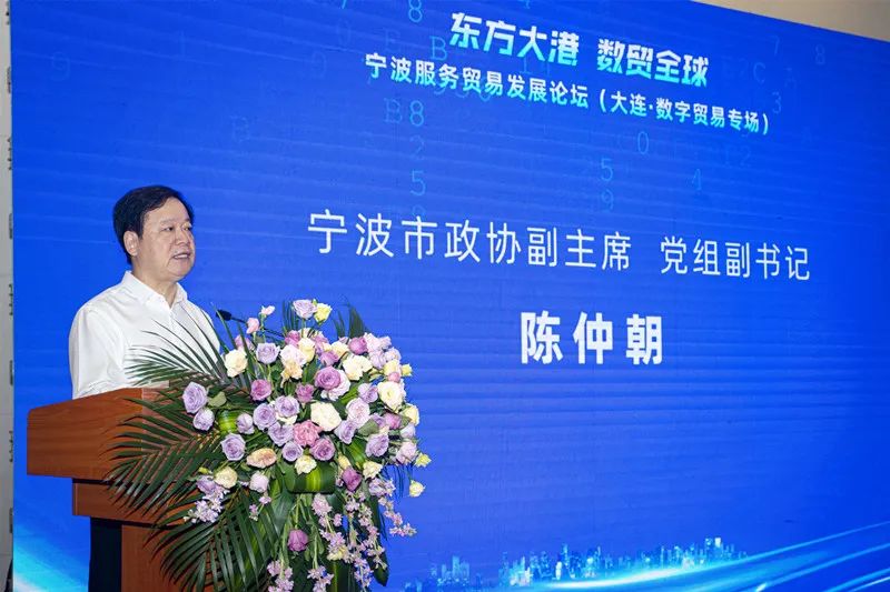 我市代表团由宁波市政协副主席、党组副书记陈仲朝任团长携浙江云朵网科技股份有限公司、宁波外经国际展览有限公司、宁波科友信息科技有限公司、云智(宁波)大数据产业运营服务有限公司等15家企业,宁波市商务局、宁波市经信局相关处室领导及多个区县(市)商务主管部门(协会顾问单位)工作人35余人到会观摩并洽谈采购,并参加由宁波市商务局主办,宁波市服务贸易协会承办,大连市数字贸易协会协办的宁波服务贸易发展论坛(大连·数字贸易专场),旨在助力宁波抢抓数字经济发展机遇,为服务贸易创新发展插上“数字化翅膀”。宁波市政协副主席、党组副书记陈仲朝致辞并发表重要讲话会上,宁波经济技术开发区商务局副局长胡浩峰、宁波外经国际展览有限公司总经理朱坚定、宁波科友信息科技有限公司总经理严余波、云智(宁波)大数据产业运营服务有限公司董事长王洪全做主旨演讲,为贸易数字化创新发展建言献策。