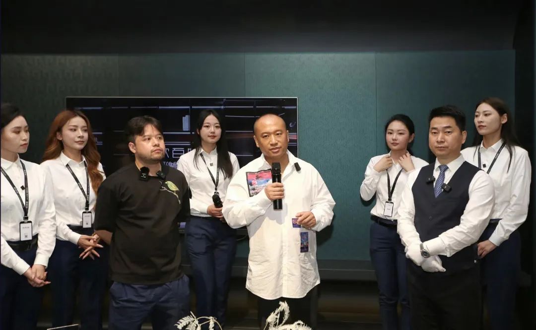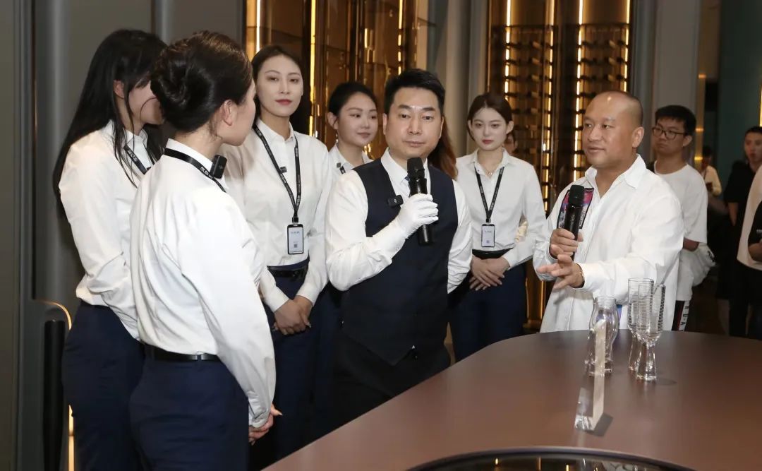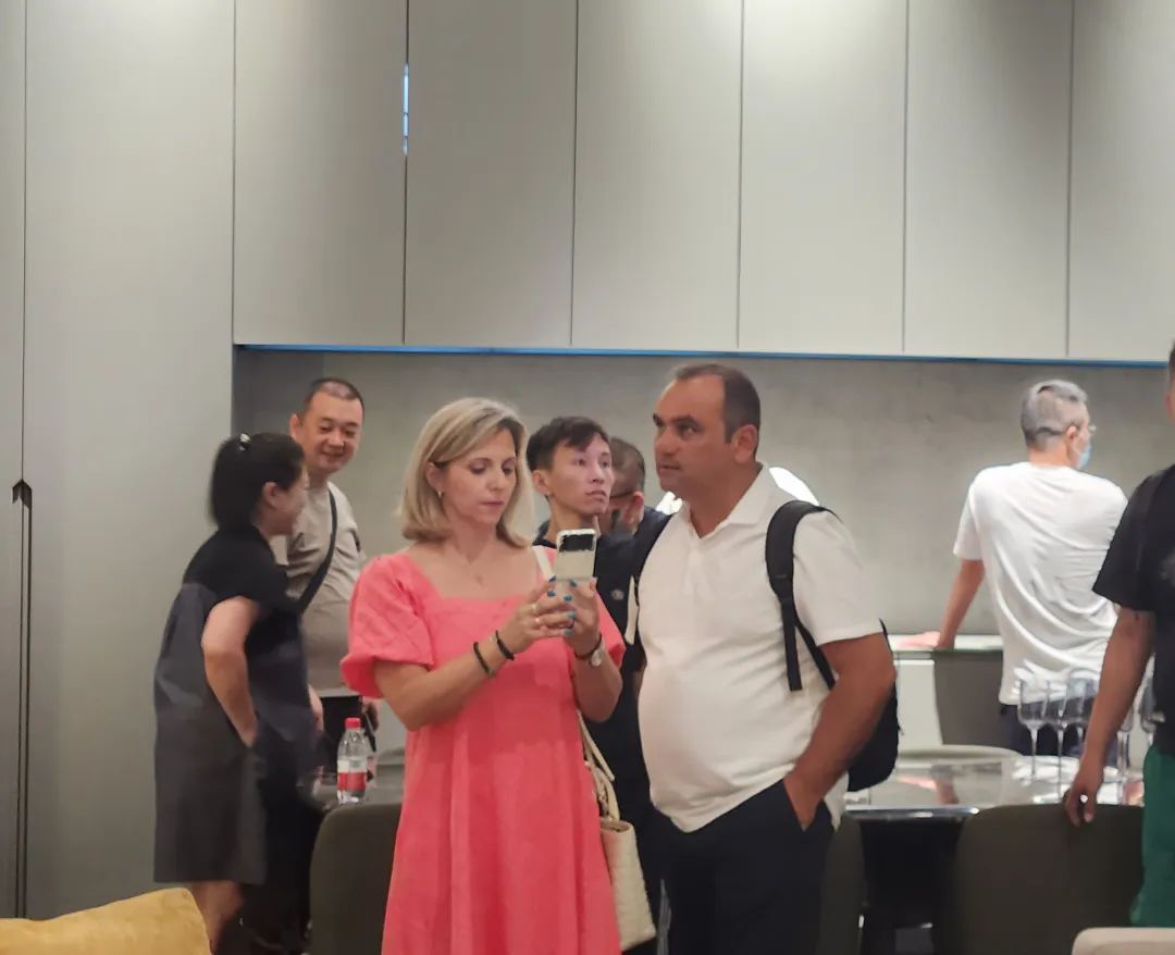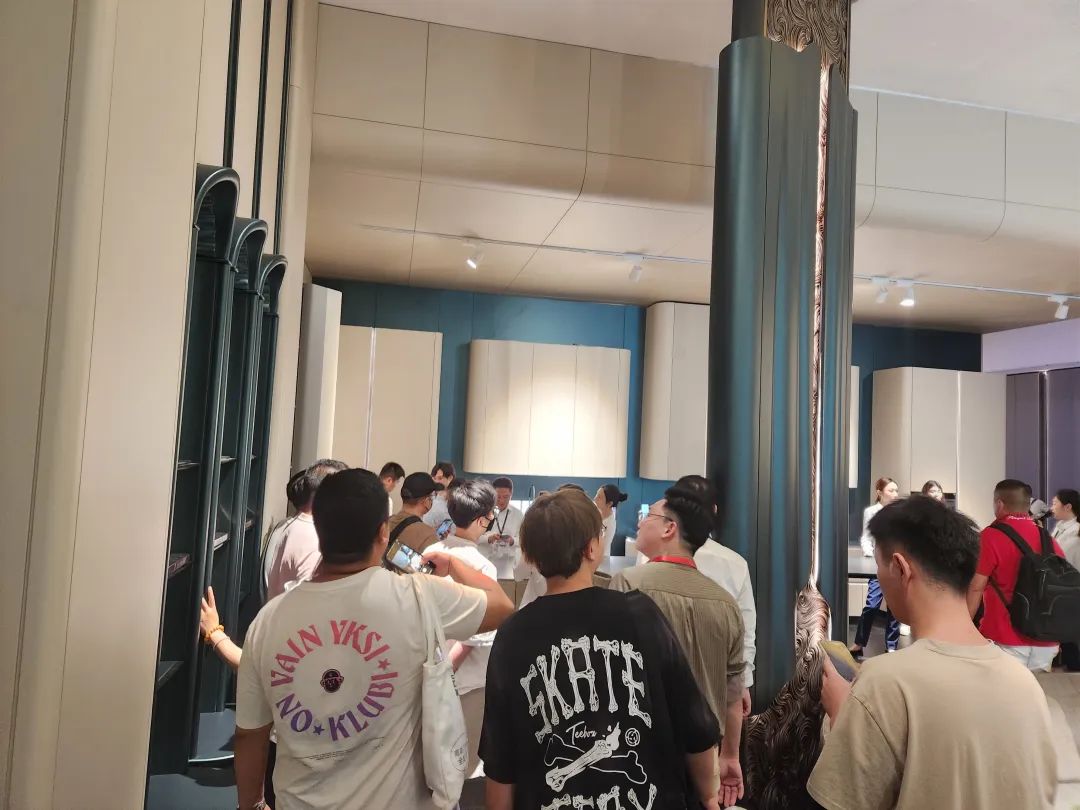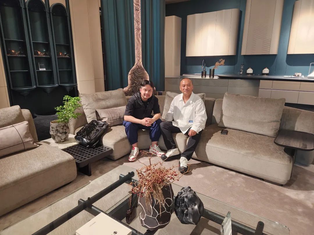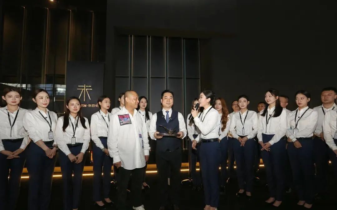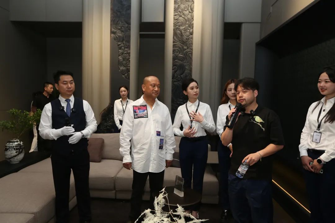 7月10日,建博会(广州)第三日,欣百特展位人潮继续澎湃。凭借匠心工艺与源创时尚设计,将高定标准再一次推高的欣百特展位已然成为各位行业领导、大咖网红、设计师以及行业从业者的必到之处!开展第三日,再次吸引了数千人次到场,成为广展高定馆独树一帜的焦点所在!从东方至远方,从世界到视界,从本来往未来,从初心达匠心,时尚生活艺术的远见,在东方精神的诠释之下,在东方审美的呈现之上,欣百特百川作品之于每一位主人与客人,是一种时尚文化的表述者,是东方艺术文脉的承继者,也是一个匠心信仰的演绎者。流水之形,惊艳之线,生辉之彩,一切东方美学的时尚元素、一切物理意义上的材料、一切神谕般的设计灵感,正在被欣百特调和在一起,如同百川归海,跨越经纬与时间,成为一种反应时尚生活态度的强势语言,直达那些坚持精致品味的人群,为大家传奇,为东方示范。生活继续,生活鉴赏家的要求仍持续。东方生活方式的时尚美学不会建立在商业机制运作下的批量产品。时尚生活的品位并不复杂,缺乏的只是对于未来的预想与一个脚踏实地、伸手摘星的筑家者。当一种东方美学的人文情怀、一种皈依生活的时尚主义,与一个“本心未已,生活未央”的坚守匠心相结合,我们的设计就有了一种能与生命相交流的共知,我们的作品就能为生活提炼出更为独特而醉人的价值与气质。欣百特创始人于海 为吴校长与Kevin老师介绍时尚东方理念