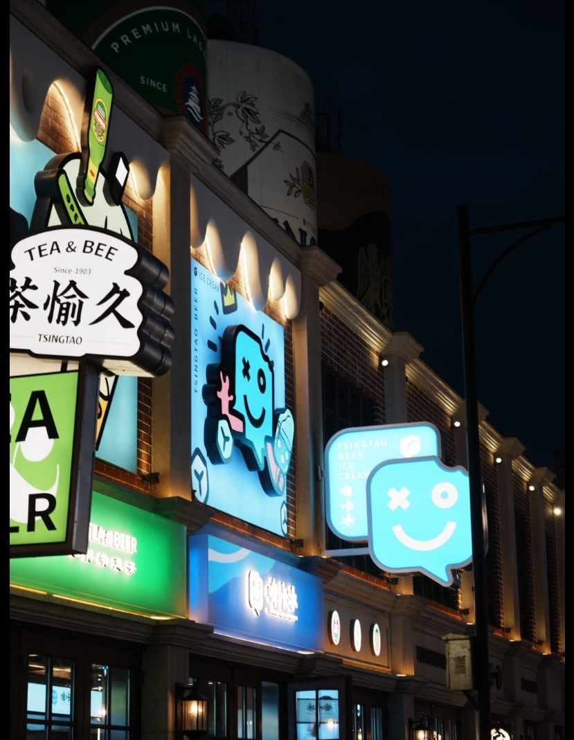 为进一步延伸营业空间,激活街区活力。以往参差不齐的门头经过二期改造后风格统一,遮挡路面的遮阳棚不见了,新门头色彩从啤酒文化元素、登州路街道商业元素、青岛海洋元素中提取,与啤酒博物馆建筑色彩遥相辉映,给市民游客带来不一样的视觉体验。