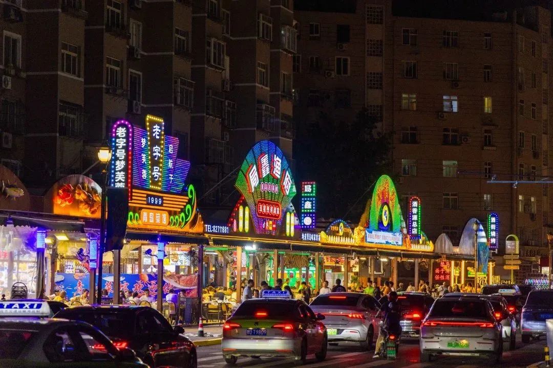 登州路啤酒街上的各大美食餐饮店,一直以来都是啤酒街上的一大特色,一大批的啤酒排挡,随便走进一家就是一个淋漓尽致的夜晚。