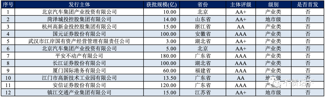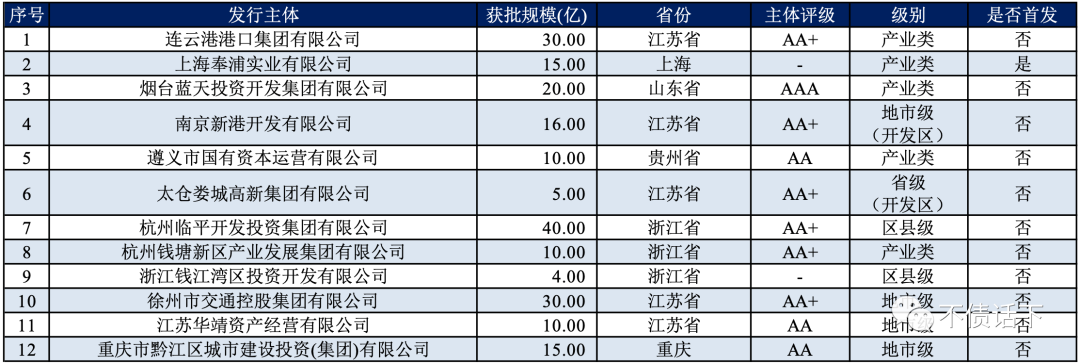 2)首发产业类项目1个,规模合计15.00亿元;无首发城投类项目。