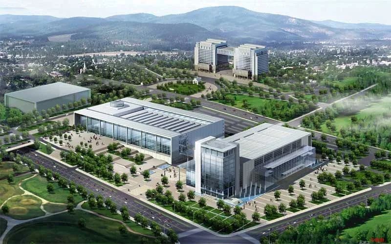 会展中心占地25万平方米,室内展览面积5万平方米,共可设置3000 个国际标准展位;室外展览面积8万平方米。