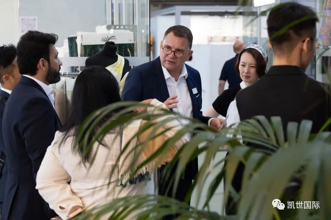开展首日上午,中国国际贸易促进委员会纺织行业分会副会长常清、副会长兼秘书长张涛,以及法兰克福展览集团董事会成员德塔拉夫布朗(Detlef Braun)、乌韦拜姆(Behm Uwe)、法兰克福展览(法国)有限公司主席兼董事总经理步书雅(Fédéric Bougeard)出席开幕式并参观了展览会。