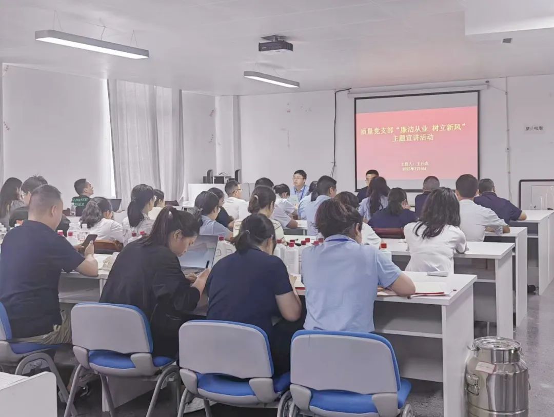 为积极开展清风宣讲活动,加大廉洁文化宣传力度,营造企业风清气正的良好氛围,7月6日下午,保健酒业公司质量党支部在临租基地三楼品酒室开展了“廉洁从业·树立新风”主题宣讲活动。