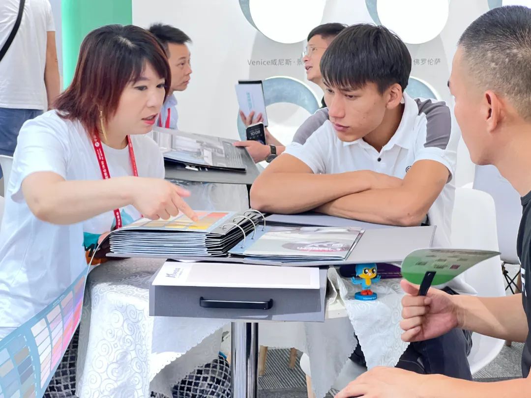 2023年7月10日,中国建博会(广州)渐入佳境,现场参观人员依旧川流不息,经过前两天的考察,参观人员基本都有自己心仪的目标,所以第三天是展会进入终极较量的阶段。开展首日,蒙太奇以华丽身姿震撼登场,观展现场人头攒动,吸睛无数。进入第三天,蒙太奇作为涂料行业先行者与引领者,再次展现激情,展位前络绎不绝,人潮涌动,谈合作者满目皆是。展会现场熙熙攘攘,人气高涨。来自全国各地的展商和行业同仁汇集于此,共同见证本次行业盛会,国内外一流企业群英汇聚、同台竞技。本次建博会,蒙太奇带来的全新设计展厅氧宝3.0功能艺术涂装馆瞩目全场,采用氧宝3.0高端功能艺术涂料“好空气,森呼吸”的产品理念,融合蒙太奇“用艺术涂装美好生活”的品牌主张,交织成一个生态环保与艺术生活并存的生活体验空间。以沉浸式体验的空间构建模式,增强了参观者的代入感和互动感,吸睛指数爆表。此外,为让参展观众更好地体验产品,展会现场还设置了配有产品体验区,同样吸粉无数。在本届建博会上,蒙太奇不仅为观众带来了家居空间构建的极致享受,还重磅推出了氧宝3.0高端功能艺术涂料系列、瓷釉艺术水漆系列、特雷西·微陶石系列等全新系列产品,满足了不同消费者的个性化需求,引起了参展观众前来品鉴,获得一致称赞。众多观众前来咨询,更有慕名而来的客户前来洽谈合作,蒙太奇展位人潮攒动、热闹非凡。展会现场,蒙太奇工作人员极具感染力的笑容,热情自然,使人倍感亲切,有条不紊的专业解说、周到全面的接洽艺术,得到观展来宾的一致认可和好评。掌握新局面,抓住新机遇。蒙太奇以广州建博会为契机,特针对此次展会带来力度空前的加盟政策与运营方案,蒙太奇招商骨干团队以严谨的态度、深入的讲解给现场观众留下深刻印象,引来现场咨询火爆。当然,精彩的活动离不开抽奖环节。我们为此特意准备了造动节互动环节,参与者都有百分之百的中奖机会获得我们提供的精美奖品!在抽奖活动中,我们看到了许多笑脸,大家都十分兴奋地期待自己抽到什么奖品。负责抽奖活动的小伙伴们也认真地核对着参与者的信息,提醒大家注意规则,保证活动的公平公正。