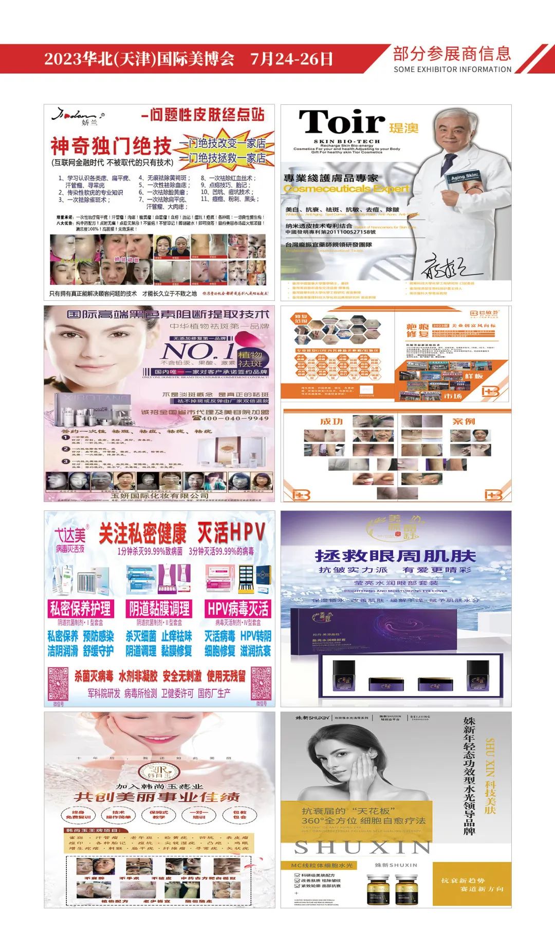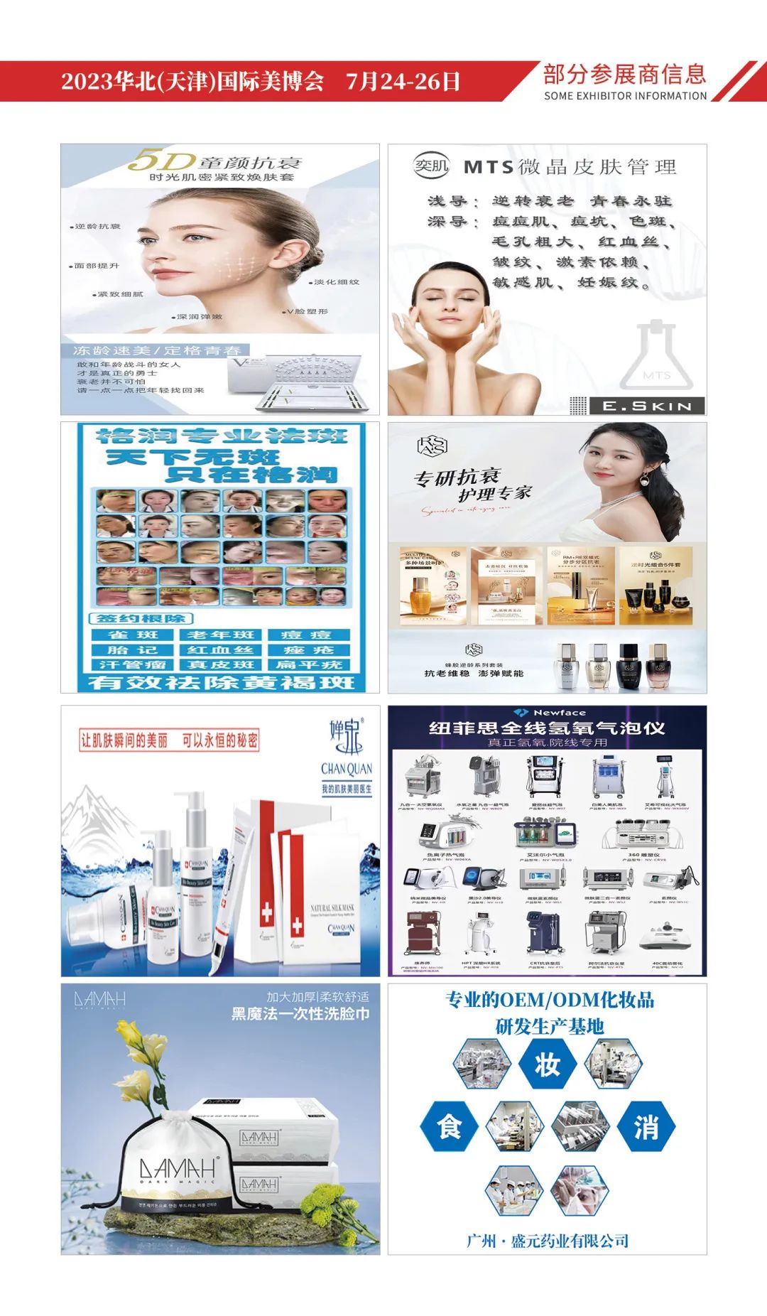 2023华北(天津)国际美博会(简称2023天津国际美博会)以“环渤海经济圈美业发展大会”为定位,将于7月24-26日在天津梅江会展中心燃情开幕。规划15000㎡展览面积,500+优质展商将携带超2000+优质品牌与大家见面。