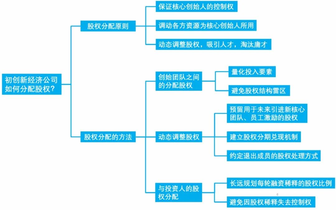 2.锁定控制权;是指公司的实际控制权要掌握在一个或几个创始人股东手中,从经营角度来看,高效统一的决策层是公司正常运转的保障;从风险控制的角度来看,一个公司连实控人或最高话事人都没有,势必管理结构松散,容易陷入公司僵局。