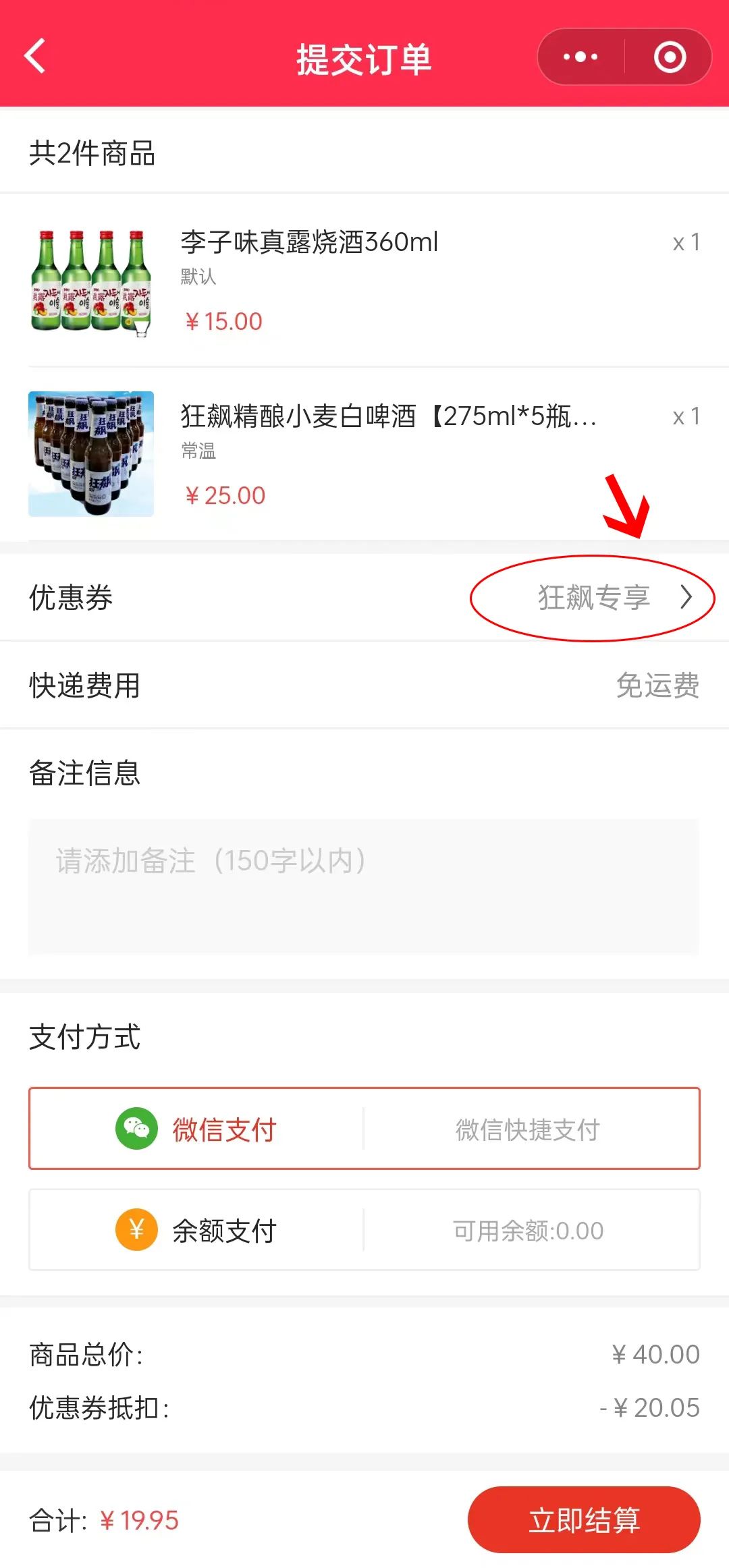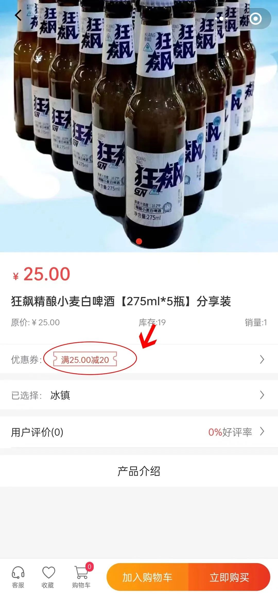 ②点击【狂飙精酿小麦白啤】--领取优惠券--加入购物车