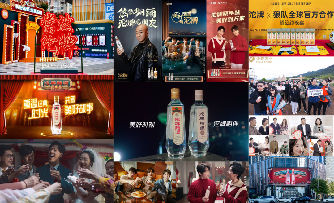 通过观察可知,近年来,沱牌酒在以“奔跑”的姿态紧抓名酒复兴趋势,不断破圈、扩圈、融圈,构筑资源互补,嫁接厂、商、企、经销商、终端消费的“美好时刻沱牌相伴”生态,通过联系“老朋友”、联动“老字号”以及各类跨界“扩列”等,不断拓展目标消费圈层的号召力及影响力,带动市场品牌氛围,实现市场渠道扩容、消费市场扩量。同时,将品牌的悠久历史化为具象的、可体验的场景,以沉浸式的呈现,唤醒80、90年代的美好记忆与对经典名酒的情感共鸣。