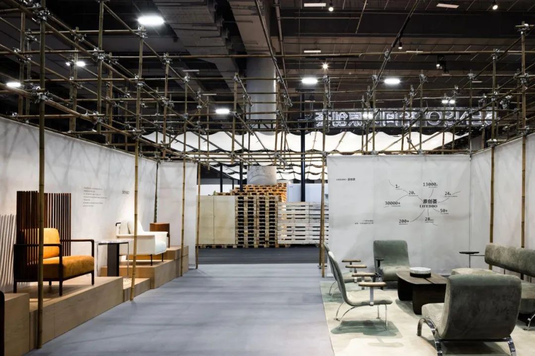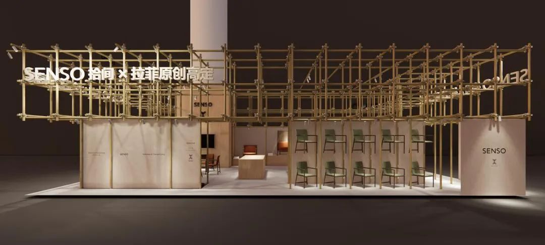 拉菲原创高定与SENSO拾间合作的展厅,通过现代化的家具与深蕴传统文化的竹材融合,阐释对与自然共生的向往,重拾了对生命与自然的敬意,将循环与再生融入空间设计之中,以竹为材,将展示空间打造成一座漫步式竹径。