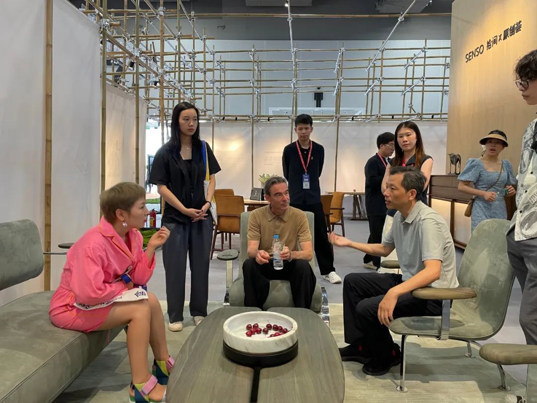 拉菲原创高定展厅亮眼的设计吸引了家居行业的广泛关注,其中不乏各路媒体和行业大咖聚焦展厅现场:深圳市室内建筑设计行业协会会长于强先生、执行会长秦岳明先生、广东陈设艺术协会设计师分会会长谢英凯先生以及著名家居杂志FRAME的创始人及主编Robert Thiemann先生、中文主编周三霞女士和荷兰明星设计师Sabine Marcelis亲临我司展位指导,对我们本次创新的展厅形象和家居理念给予了高度肯定。