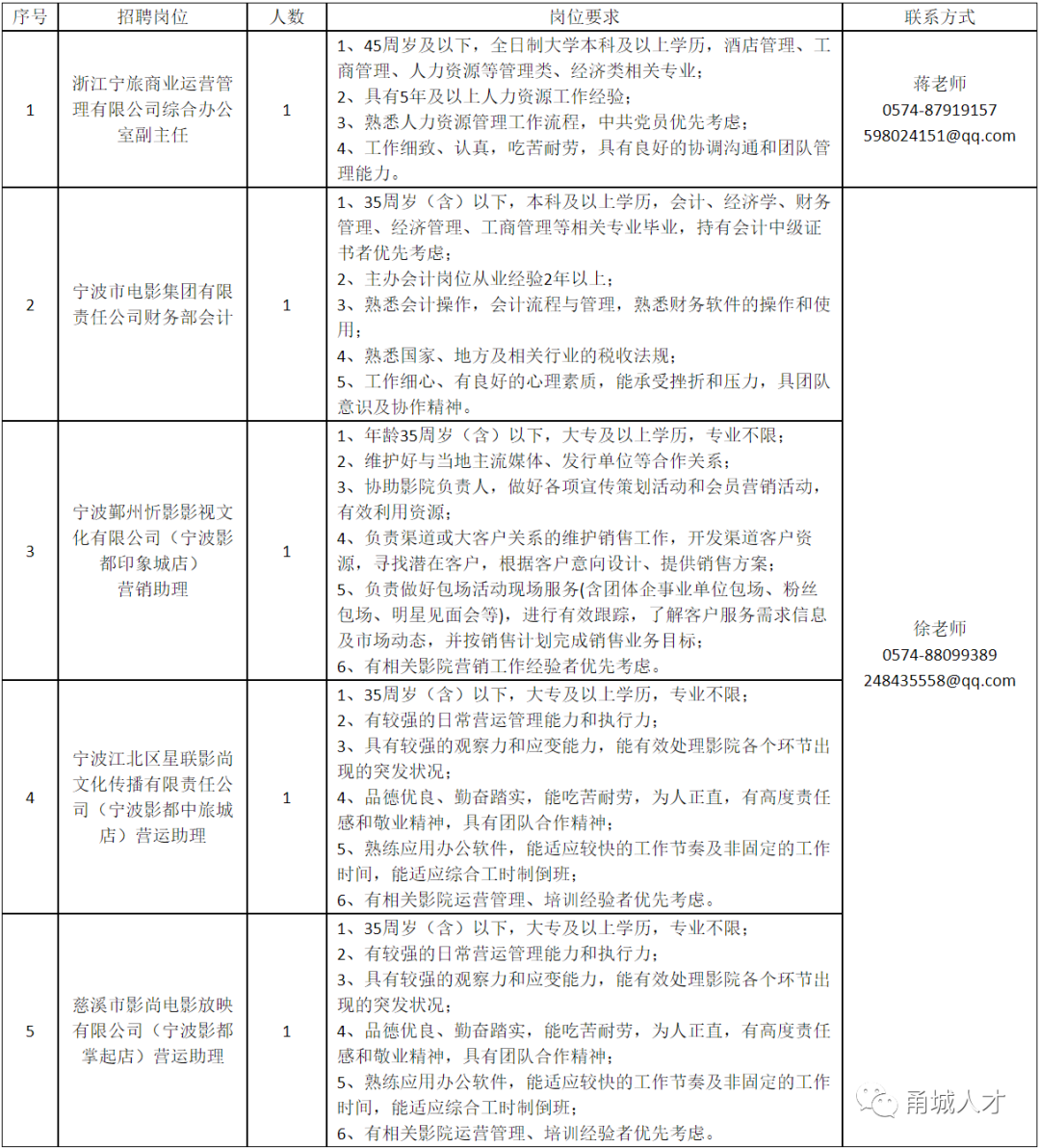 宁波文旅会展集团有限公司因工作需要,现对社会公开招聘人员,具体如下: