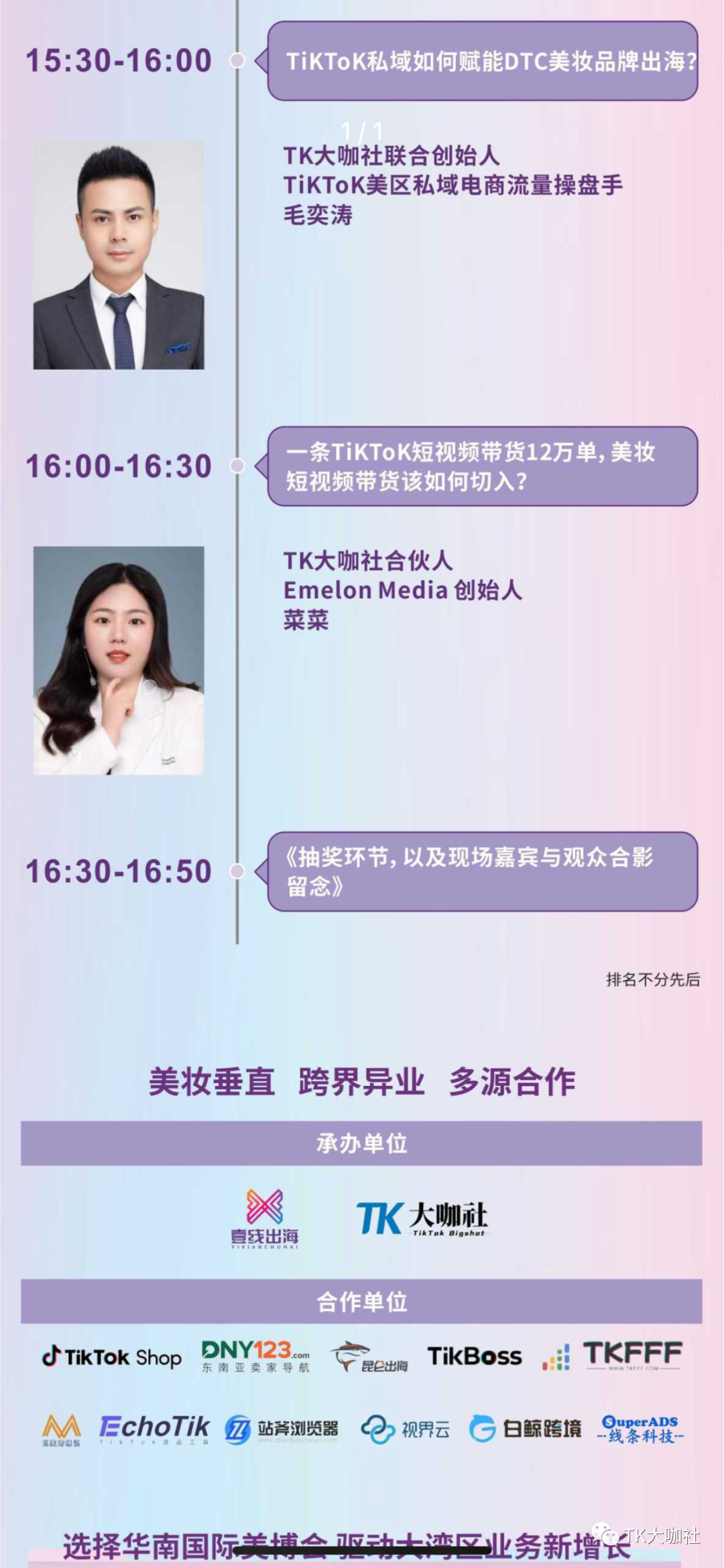 2、邀请了TikTok官方美妆小店经理,TikTok全托管招商经理,广告投放经理现场分享,