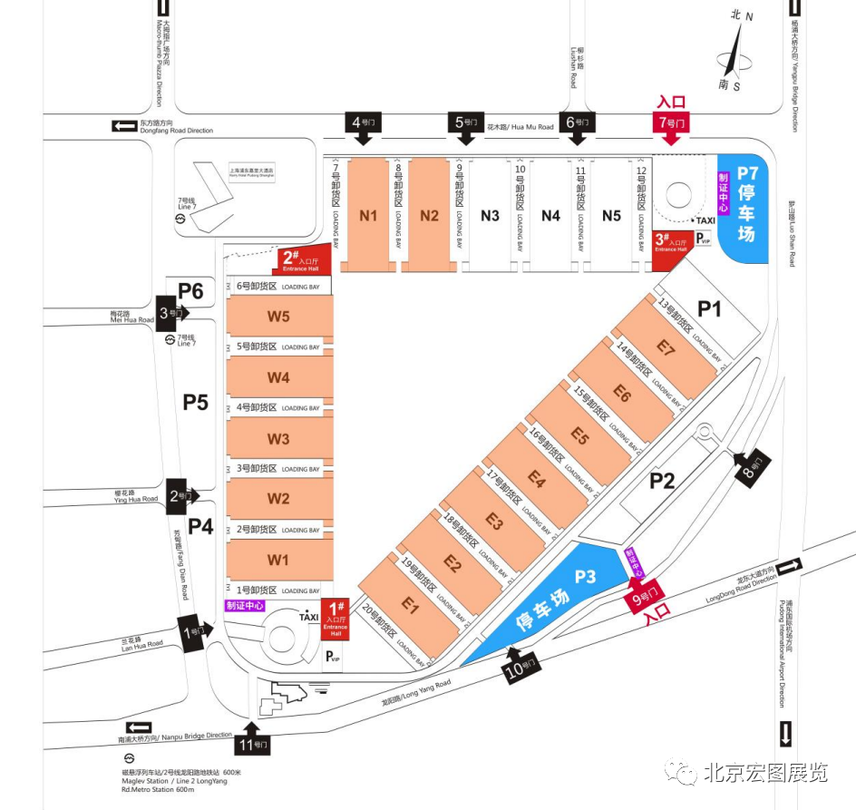 W1-W5、E1-E3 馆搭建商,可就近到1号入口厅(南厅)、2号入厅(北厅)宏图主场搭建服务台,领取纸质版押金单。