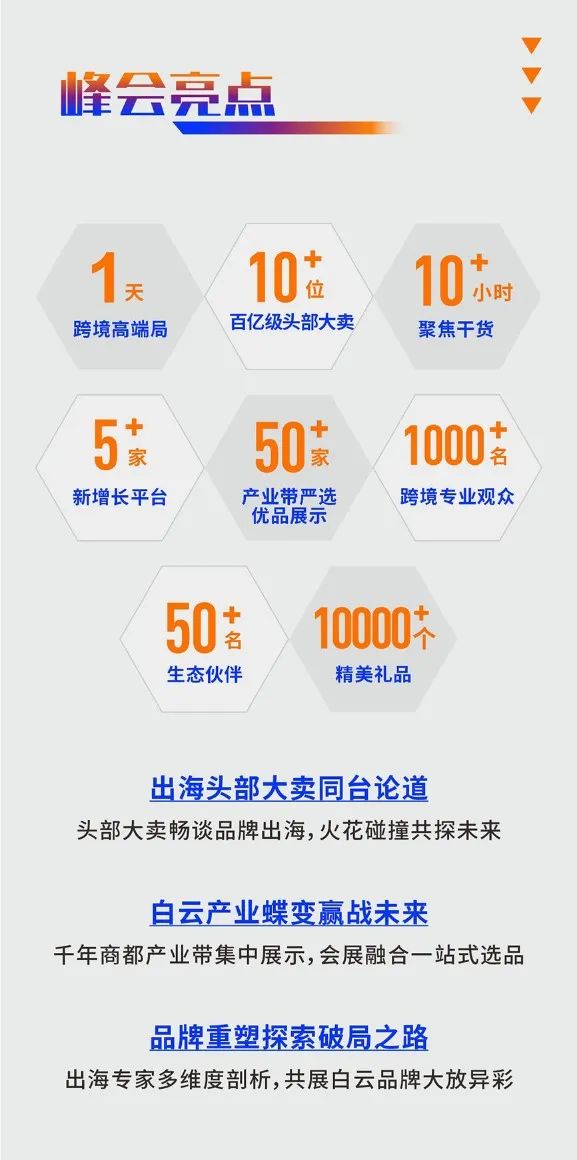 本次峰会覆盖全国50+产业带,100+白云工贸一体企业,还有阿里巴巴国际站、全球速卖通、Lazada、天猫淘宝海外四大跨境电商头部平台联合组织200+专业卖家,100+跨境电商生态服务商,覆盖行业全链条,推动生态圈内企业深度合作,挖掘全球外贸商机,共同开拓海外万亿蓝海市场。