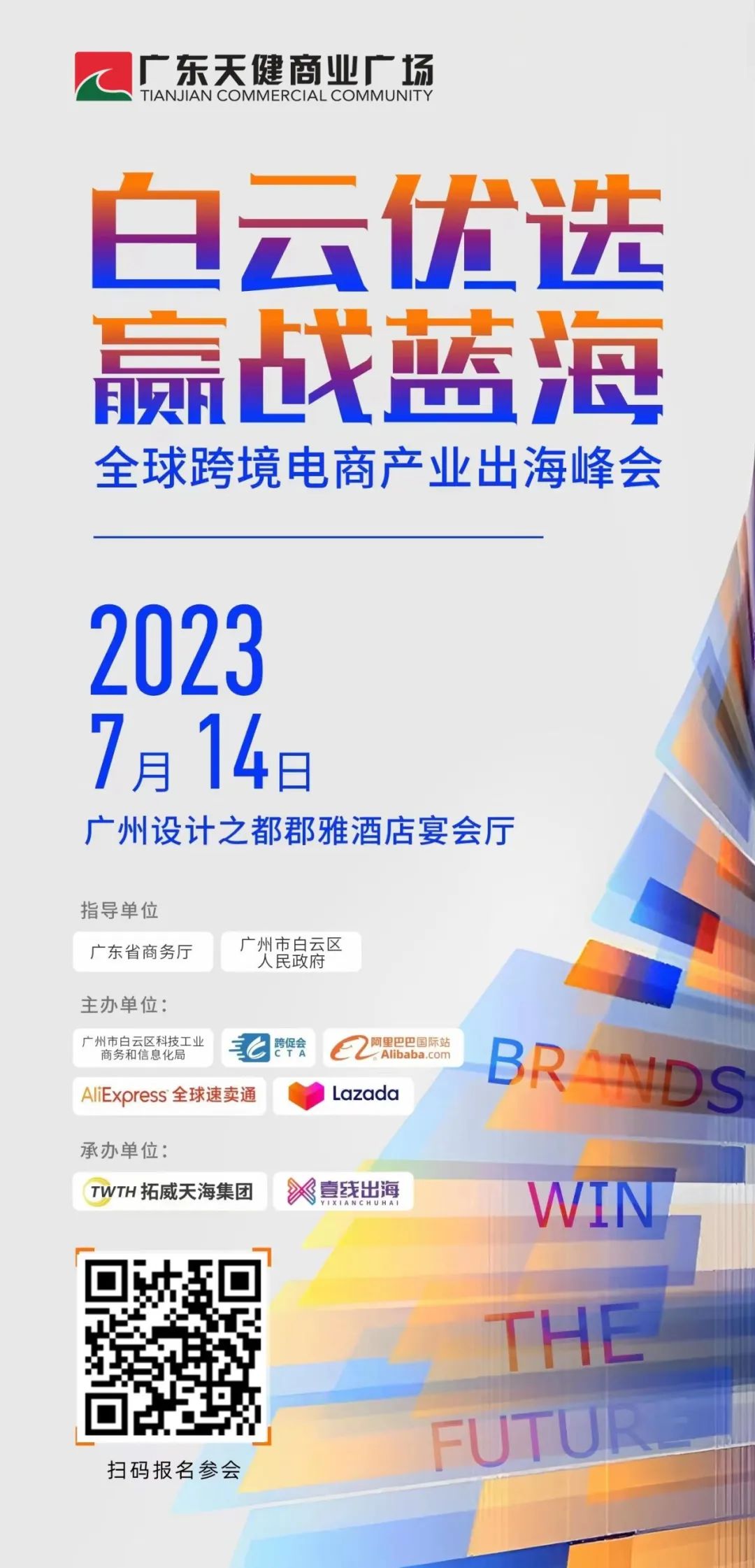 2023年7月14日在广州设计之都郡雅酒店举办以“白云优选 赢战蓝海”为主题的全球跨境电商产业出海峰会。