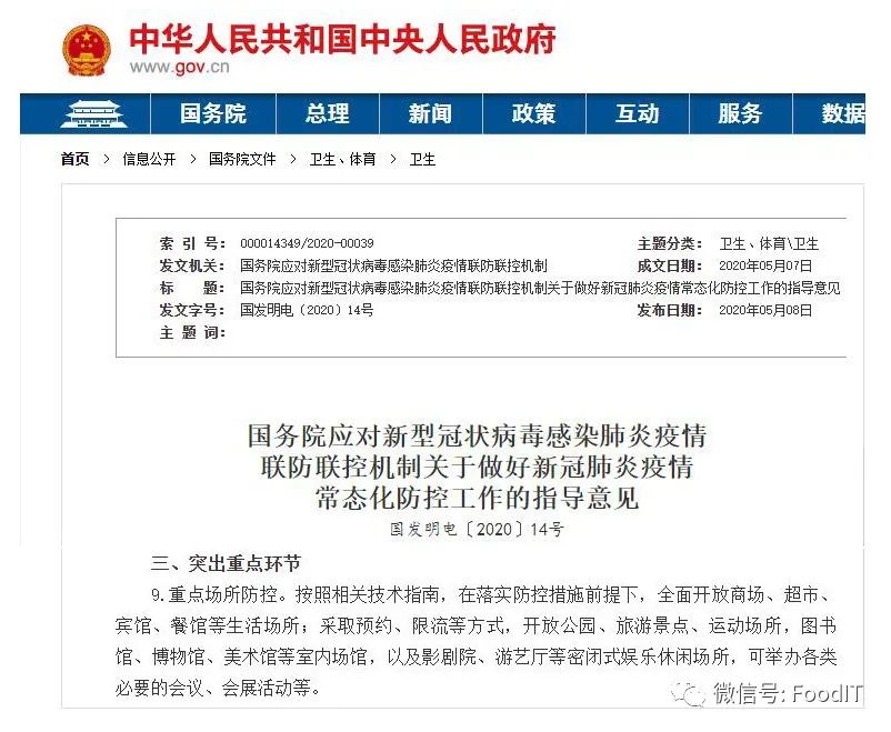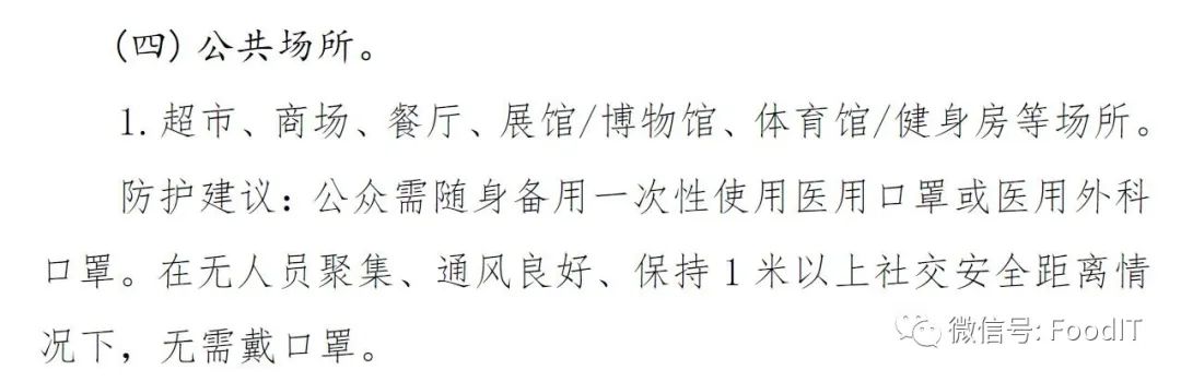 自国务院发布关于《做好新冠肺炎疫情常态化防控工作的指导意见》,指出:按照相关技术指南,在落实防控措施前提下,可举办各类必要的会议、会展活动等后,5月21日,国家卫健委也发布了适用于新冠肺炎疫情低风险地区的《公众科学戴口罩指引(修订版)》和夏季空调运行管理与使用指引(修订版),文件指出:超市、商场、餐厅、展馆/博物馆、体育馆/健身房等场所,在确保有效通风换气,保持人员1米以上社交安全距离情况下,无需戴口罩。
