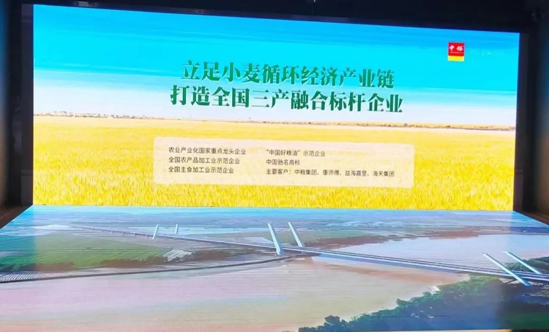 引导员张舒闲向实践团成员介绍在粮食安全方面,中裕集团始终坚持“生态优先、绿色发展”的理念,立足小麦循环经济产业链,致力于打造全国三产融合标杆企业。“粮”好实践团成员在引导员张舒闲的带领下,参观中裕公司的小麦全产业链,小麦全产业链包括“高端育种、订单种植、仓储物流、初加工、食品加工、深加工、生态养殖、新能源、特色蔬菜、餐饮商贸”十个环节,在高端育种方面,中裕集团是全国唯一拥有自主育种能力的小麦加工企业,拥有6.5万亩良种繁育基地、120亩海南南繁基地,15000份种质资源、1000多个小麦新品系;在订单种植方面,中裕推广“三免一加”优惠政策,粮食得以大幅度增产,带动了35万农户年增收5.1亿元;在食品加工环节,中裕食品主食品加工居全国第7位,这十个环节相辅相成,展现了中裕集团的匠心工艺,共同筑造了中裕集团粮食的高品质。