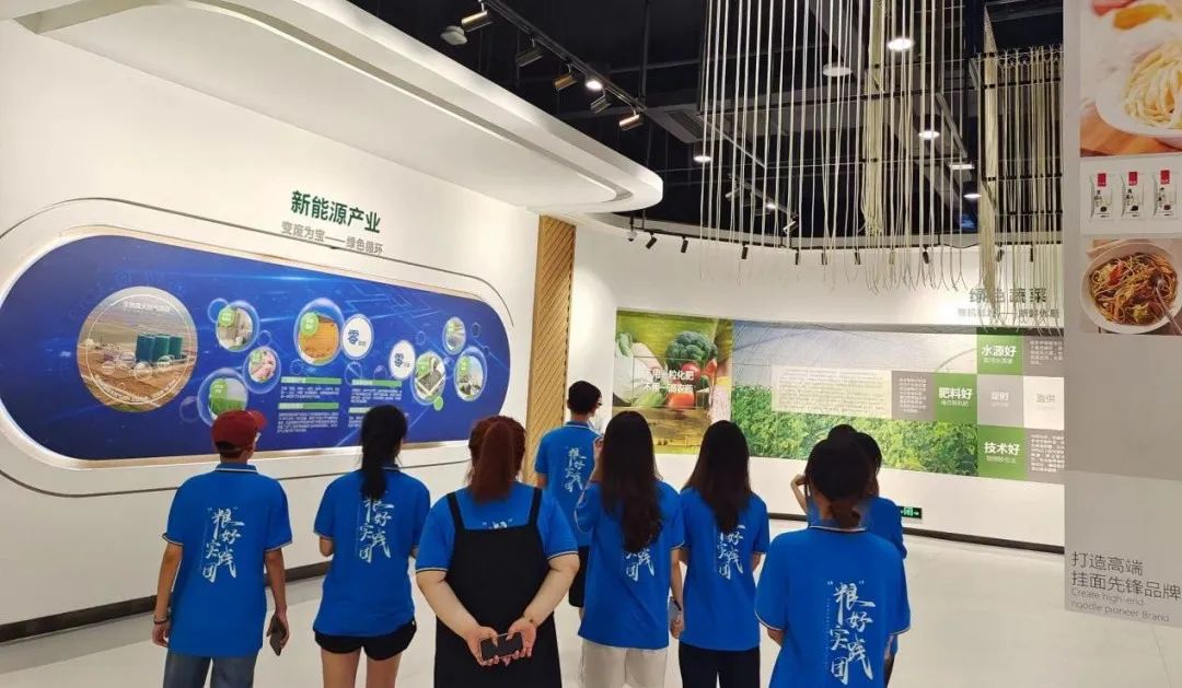 引导员张舒闲向实践团成员介绍,作为农业产业化国家重点龙头企业,中裕集团坚持“藏粮于技”“技术兴国”理念,致力于通过技术进步,建设绿色稳产高产的高标准农田,同时发展节本智能高效的现代化农业。中裕集团积极打造“生态优先,绿色发展”的产业标识,为实现技术运用,中裕集团采取有机栽培的方式培养新鲜优质的绿色蔬菜,培养水源好、肥料好、技术好的“三好蔬菜”。为实现产业振兴,中裕集团持续扩大产业体系,打造“三产融合”全国标杆,中裕集团还大力推广种植小麦良种,带动农民增收,打造乡村振兴齐鲁样板,中裕集团持续加大科研力度,研发更多健康、安全、营养的功能性食品,打造世界知名品牌,中裕集团还推动高端酒精、谷朊粉、赤藓糖醇、蛋白肽等出口创汇,打造国际型企业。