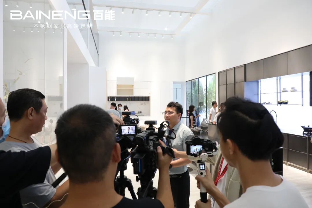 广东广播电视台、搜狐焦点家居、中华橱柜网等多家行业权威媒体对话百能家居,探讨行业发展趋势,百能家居招商部经理黄文军向媒体解读了百能本次参展的主题、产品特色、赋能政策与未来发展方向。