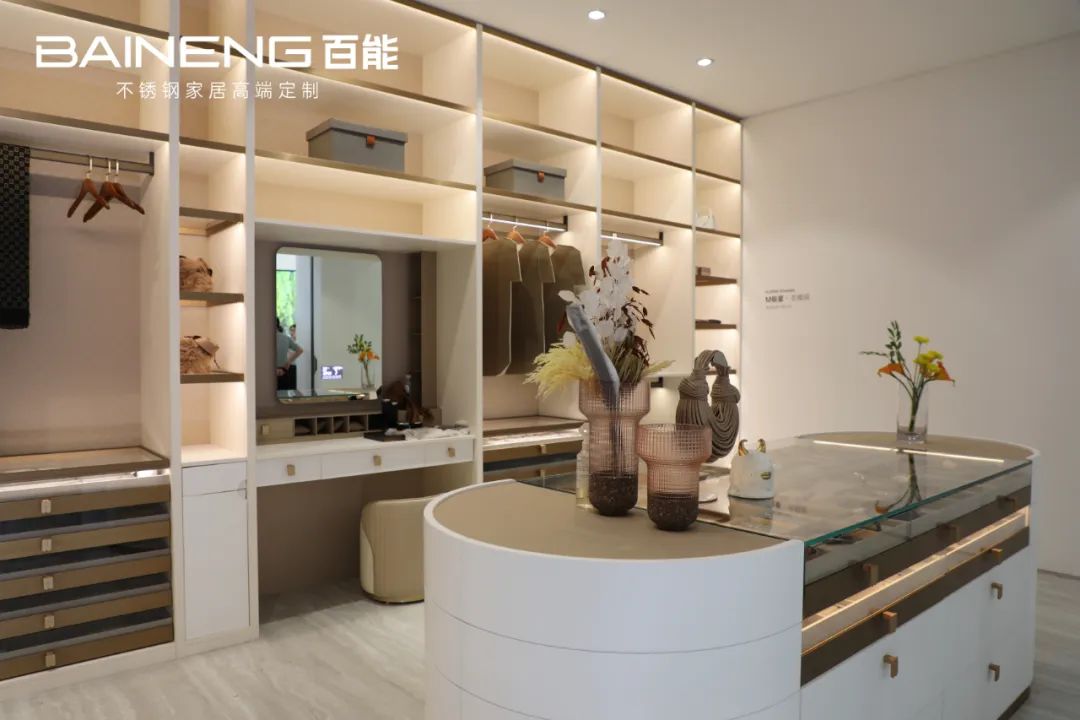 百能家居作为不锈钢家居头部品牌,每次在建博会上展出的新品都在理念和设计上引领行业潮流,不断推出独具创意和时尚感的产品,满足消费者对个性化、高品质家居生活的需求。