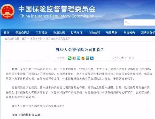 如患有高血压、糖尿病、体重超重及从事高风险职业等情况下,被保险人的风险要远远大于标准人群,保险公司会根据风险不同调整费率,因被保险人体重超重而追加保费的事例非常多,排在加费排行榜的第2位。