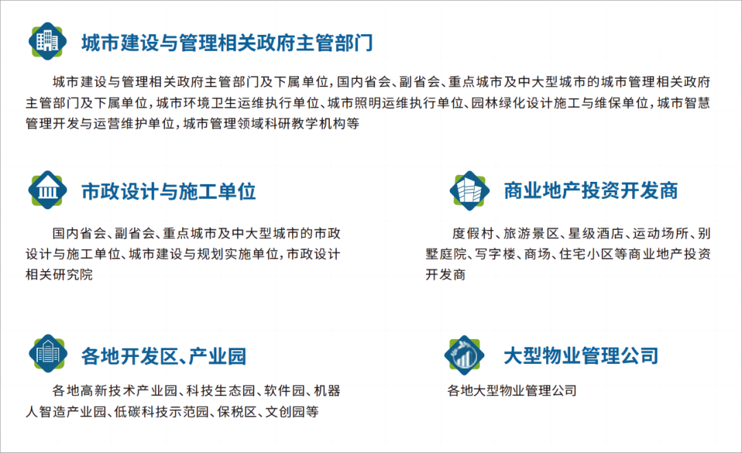 展会遵循“政府支持引导、企业市场化运营”的机制筹备,开创国内首个市容环境产业专业展会,展览规模45000+,涵盖“城市环境卫生、城市园林绿化、城市照明、智慧城管”四大行业,汇集行业上下游重点龙头企业和优质展商,齐聚全国各地城市管理领域专业观众,同期举办多场高规格行业论坛和配套活动,搭建市容环境产业国际化、综合性洽谈合作平台。