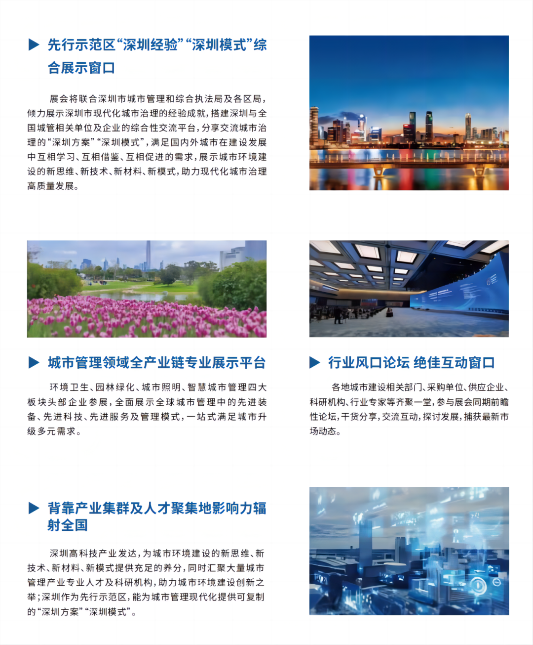 展示深圳在城市管理工作中把握新发展阶段、贯彻新发展理念、构建新发展格局、定位先行示范目标、推进高质量发展的创新与实践。