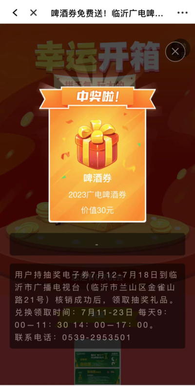 此次啤酒券的发放对象为下载并注册“爱临沂客户端”的用户,活动参与方式为线上抽奖和线下兑换相结合。