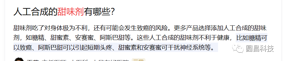 人工合成的添加剂则没有那么安全了,糖精、安赛蜜、阿斯巴甜,这些如果过量摄入可能会发生致癌的风险。