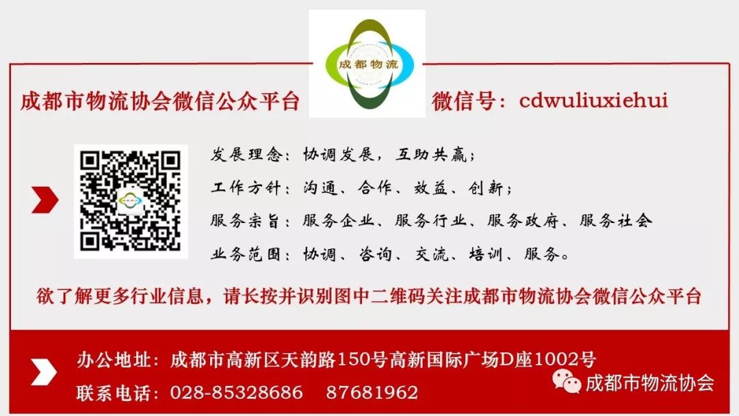 成都市物流协会物流企业综合评估办公室是中国物流与采购联合会、中国仓储与配送协会在成都物流行业唯一授权的地方评估办公室。目前已授权评估工作有:国家A级物流企业评估、星级冷链物流企业评估、担保存货管理及质押监管企业评估、星级仓库评定、金牌仓储企业评定、商品现货电子交易市场评估、供应链服务企业评估、网络货运平台企业服务能力评估工作办公室等多项工作。地址:成都市高新区天韵路150号高新国际广场D座1002