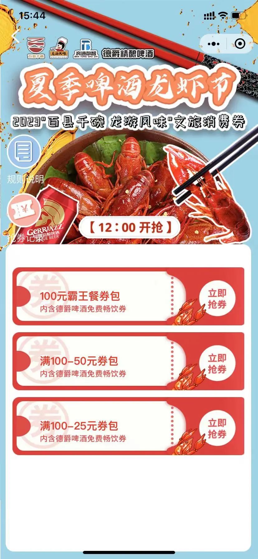 7月15日-7月21日24:00期间,市民和游客凭有效文旅消费券可在德爵夜市指定12家餐饮商家处,免费或优惠品尝相对应的小龙虾和啤酒等美食。