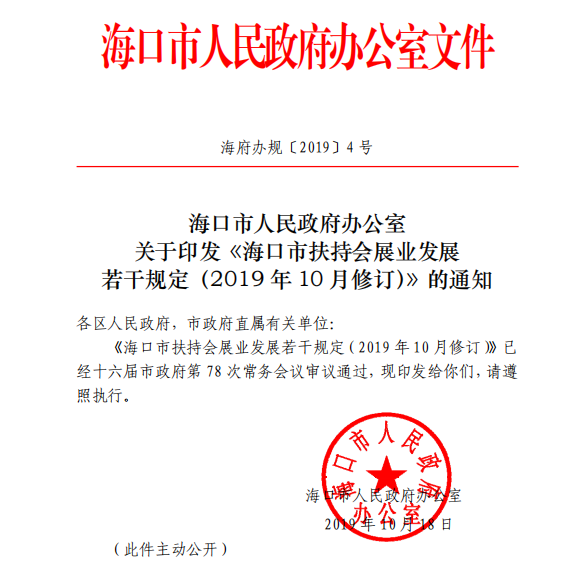 《海口市扶持会展业发展若干规定(2019年10月修订)》的通知
