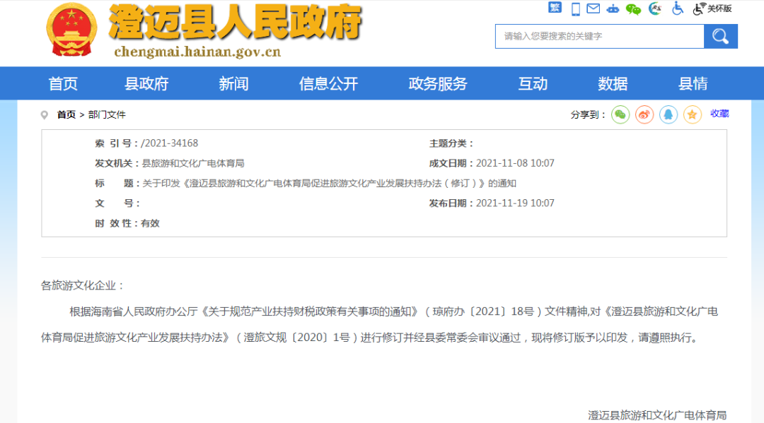 澄迈县旅游和文化广电体育局促进旅游文化产业发展扶持办法(修订)
