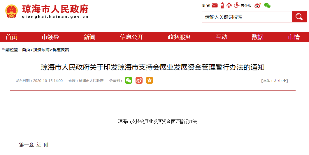 琼海市支持会展业发展资金管理暂行办法