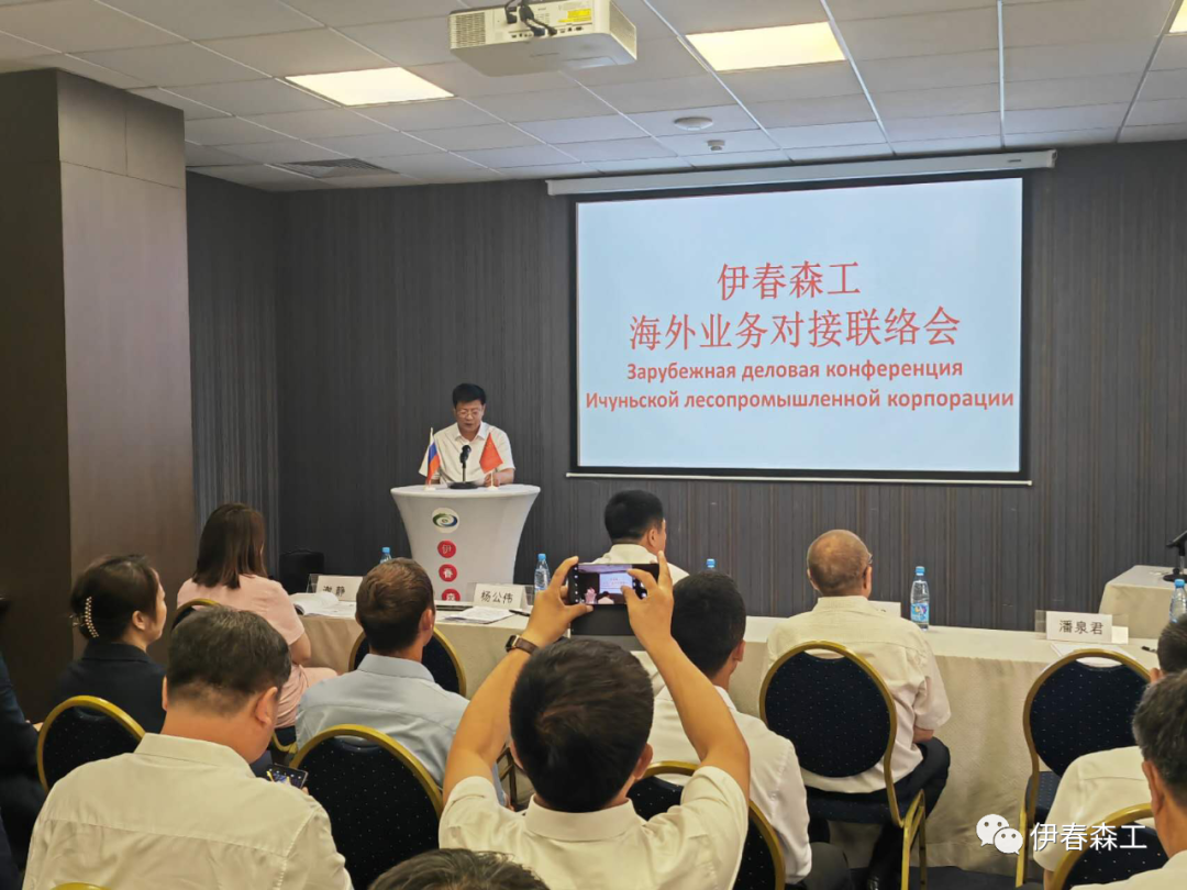 展会布展期间,7月10日下午,成功举办了伊春森工海外对接联络会,市政府代表团、伊春森工集团代表团与中俄方企业家代表15人参加了对接联络会,市委常委、副市长李立新致辞。李立新说,中俄两国是山水相邻、休戚与共的好邻居、好伙伴,两国人民的友谊源远流长,特别是在习近平主席和普京总统的直接推动下,中俄全面战略协作伙伴关系持续保持高水平运行。目前,正致力于“一带一路”建设同欧亚经济联盟深入对接,带动两国向更多领域、更加深入合作迈进。