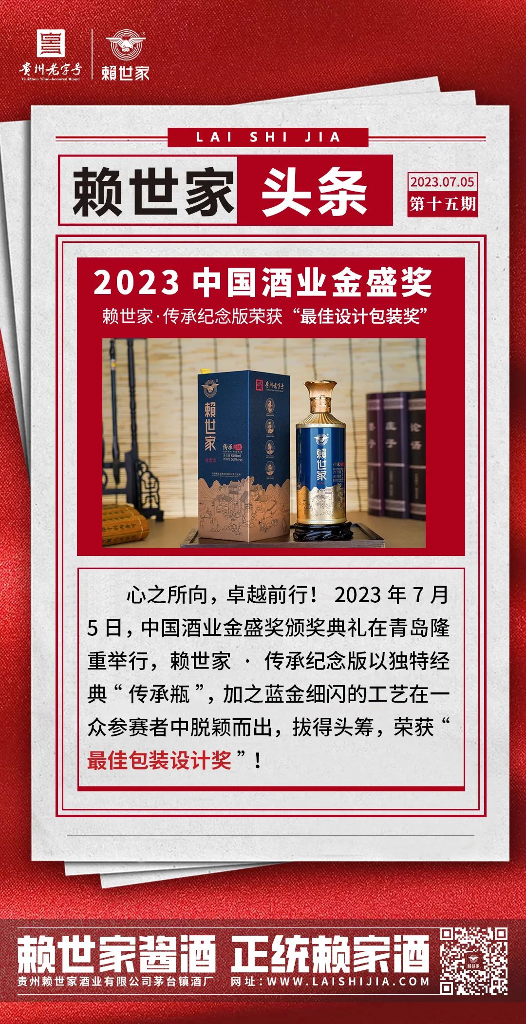 7月5日,2023年中国酒业金盛奖榜单在青岛揭晓,赖世家酒业凭借深厚的文化底蕴、过硬的品质实力蝉联“中国酒业好产品”大奖,并揽获“最佳包装设计奖”。