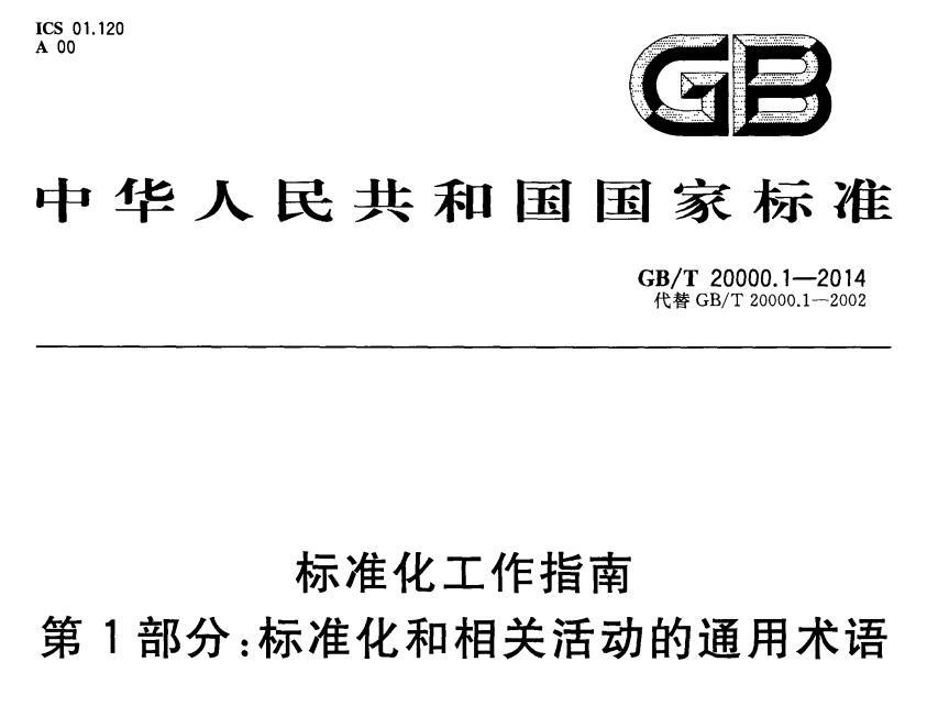 GBT 20000.1-2014 标准化工作指南 第1部分:标准化和相关活动的通用术语(2015-6-1实施),其中对“标准化”与“标准”进行定义。