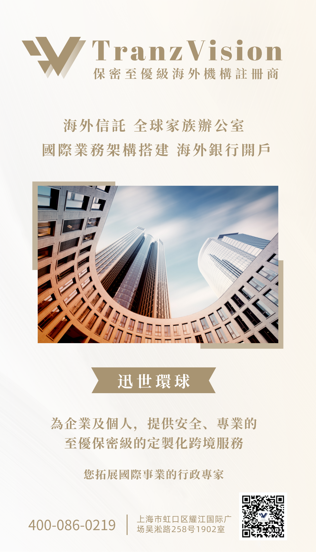 TranzVision 是企业布局海外、全球化运作的绝佳合作伙伴。服务领域涵盖36个主权国家及离岸金融中心,专注于全球公司注册、跨境投资、海外财税、海外置业,投资移民等一站式专业跨境服务。
