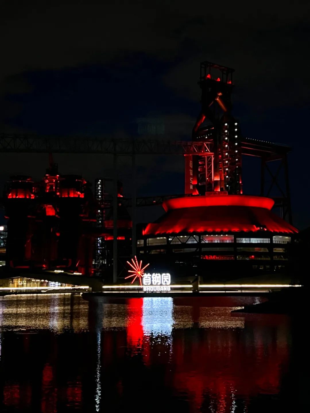 IPS嘉年华结束之后夜幕还未降临,黄昏之际您可以走上世界最长的高空走廊俯瞰首钢园的全貌,一圈时间下来夜色来临之际首钢园又是另一番景象,夜晚的首钢园主色调以红色、蓝色为主,红色、蓝色的射灯照射在这座百年钢铁之城上颇有一番赛博朋克的感觉,仿佛直接穿越至2077年。您可以打卡以红色灯光照射的四座高炉,与它来一场跨越百年的合照,当然您也可以与走到秀池旁与原首钢最早的大型水面景观和他身后的明星功勋高炉—三高炉一起合影,当然不止于有百年建筑群,首钢园还有2022年冬奥会的滑雪大跳台,以及14800平方米的时尚购物中心的六工汇商场,提供多元化丰富的文化娱乐体验。