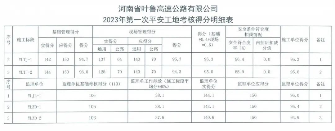 在业主公司2023年第一次平安工地考核中以95.3的成绩获得全线各标段第一名的好成绩。