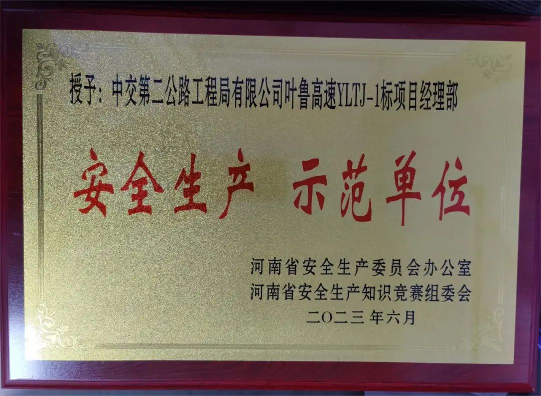 近日,叶鲁高速一标项目在第十五届“安全河南杯”安全生产知识竞赛中以优异成绩,被主办单位联合授予“安全生产示范单位”荣誉称号。