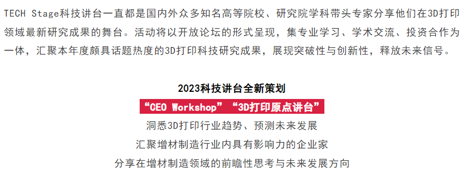 聚焦实际应用,并与展会现场展示的技术、设备相结合,打造全新的活动体验;提供专业、高度聚焦的会议、研讨会和其他专业内容,并营造交流互动的氛围;帮助设计师、工程师和买家评估、采纳和优化配置,以满足他们对于增材制造的真正需求。