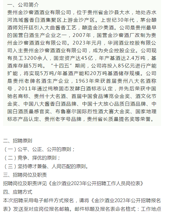 附件1:金沙酒业2023年公开招聘工作人员岗位表.xlsx