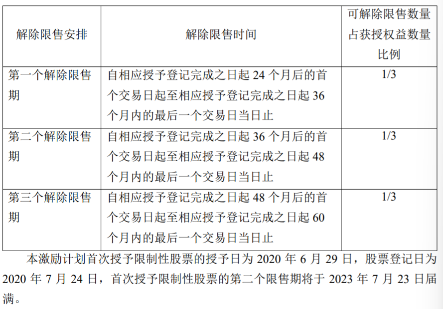 1、关于限制性股票的解除限售期以及解除限售时间
