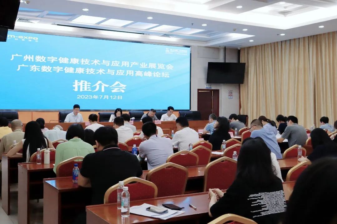 2023年7月12日,广州数字健康技术与应用产业展览会推介会在广州市卫生健康委员会会议室召开。广州市卫生健康委体制改革处处长蔡映红,广东省卫生信息网络协会副会长兼秘书长徐文华、广州生物工程中心有限公司副总经理黄立强,广东跨采展览有限公司总监林伟,广州市胸科医院、南方医科大学中西医结合医院、广州医科大学附属第四医院、广东省生殖科学研究所、广州医科大学附属第二医院、广东省妇幼保健院、广州医科大学附属肿瘤医院、广东省第二人民医院、广州市红十字会医院、广州市妇女儿童医疗中心、广东中能建电力医院、中山大学附属第一医院、中山大学附属第六医院等医院代表及20多家企业代表参加会议。