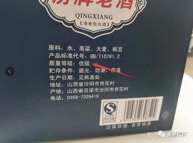 真正的白酒爱好者会选择优级产品。一级产品相对来讲要差些。比如酱香型白酒,必须是使用大曲酿制的才可以标注优级,如果是使用麸曲工艺只能标注一级。大家在市场上可以发现,即便是标记了优级的产品,价格差别也很大,有几十元的也有上千元的。这是因为,优级产品中也有高低之分,有非常精品的有机产品,也有刚踩数据标准线的优级产品。所以,这种识别方法只能作为一种参考,并不能完全确定标注优级的一定是好酒。